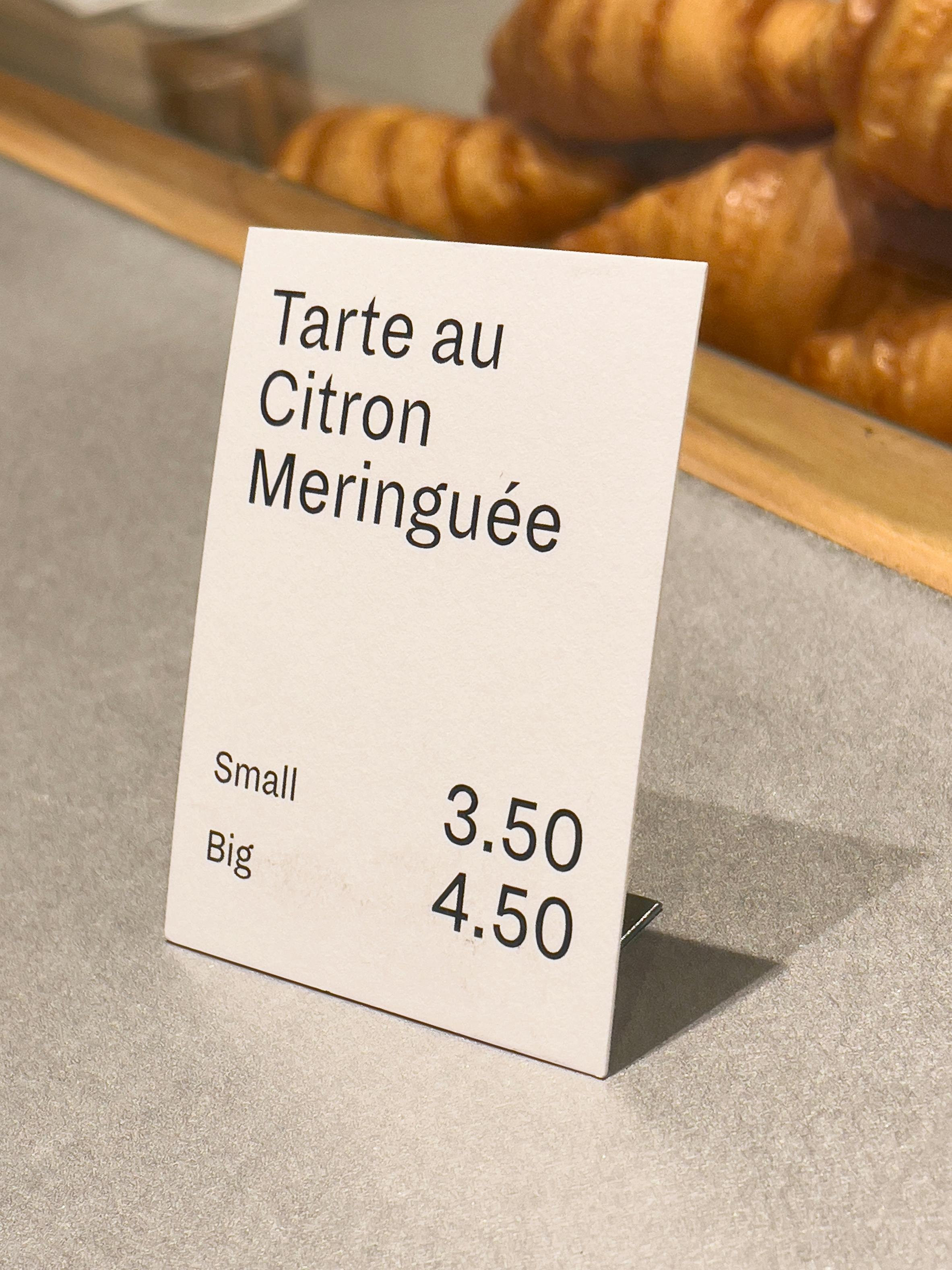 We have developed two versions of metal holders especially for product labeling, which we produce locally in Berlin in small quantities. We designed a curved metal holder for the wall shelves in the new store, where the bread and baguettes are displayed. It sits precisely on the edge of the shelf and enables magnetized product labels to be attached and replaced quickly. The holder is designed so that signs are presented at the ideal viewing angle to customers. For signage inside the display cases, we have developed a V-shaped version of the metal holder, which also holds magnetized product signs.